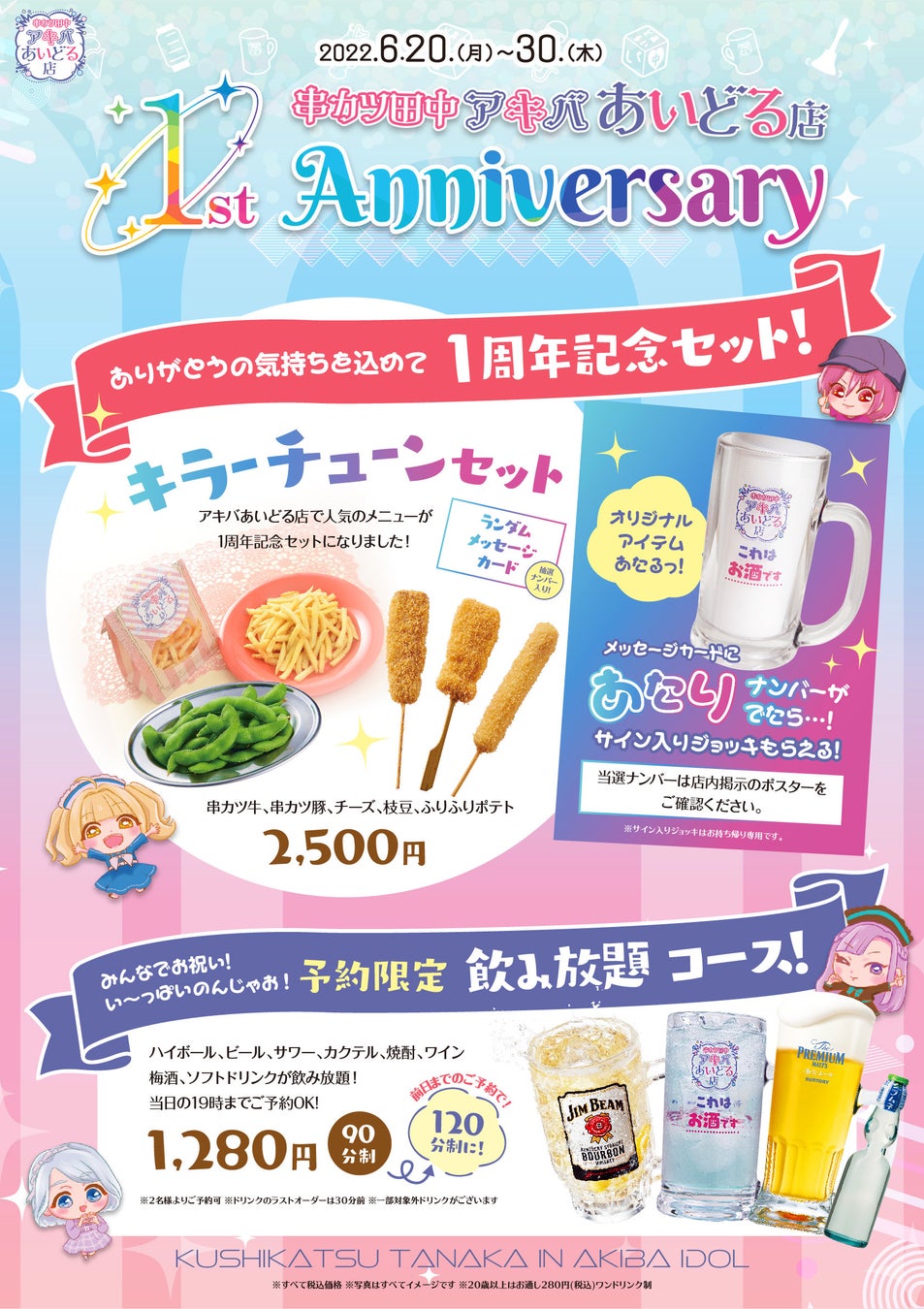 これからも皆さまに応援いただき成長したあいどるが活躍できる場でありつづけるよう、またアキバあいどる店を楽しんでいただけるよう、串カツ田中の味と「あいどる」の笑顔・接客で、お客様を明るく笑顔にしてまいります。